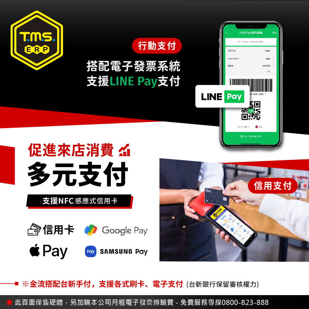 指定機種提供多元支付 + 電子發票開立。