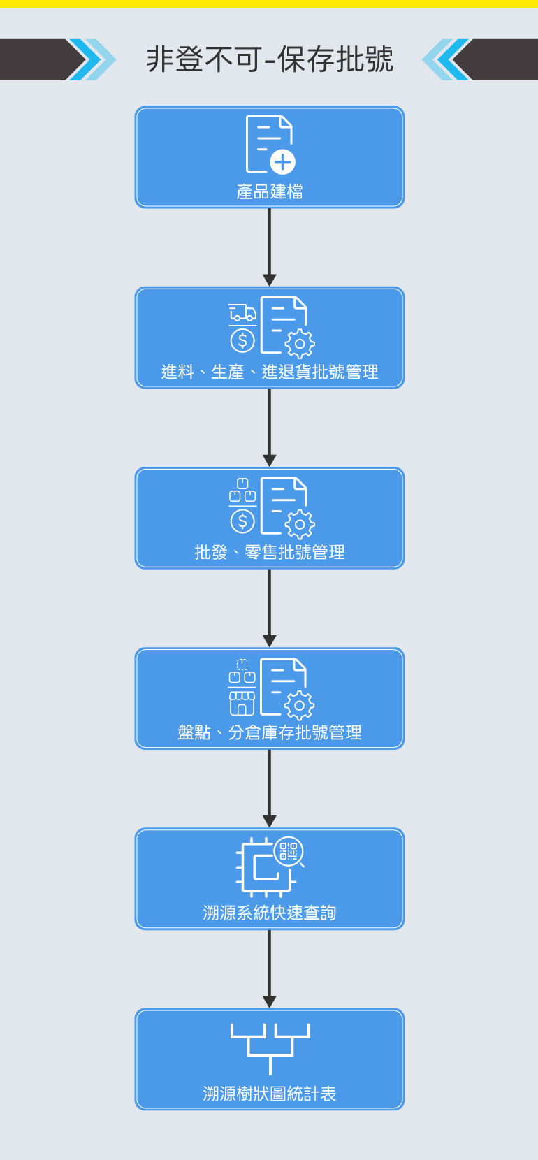 符合衛福部溯源追蹤要求,提供非登不可、非追不可溯源完整批號查詢系統