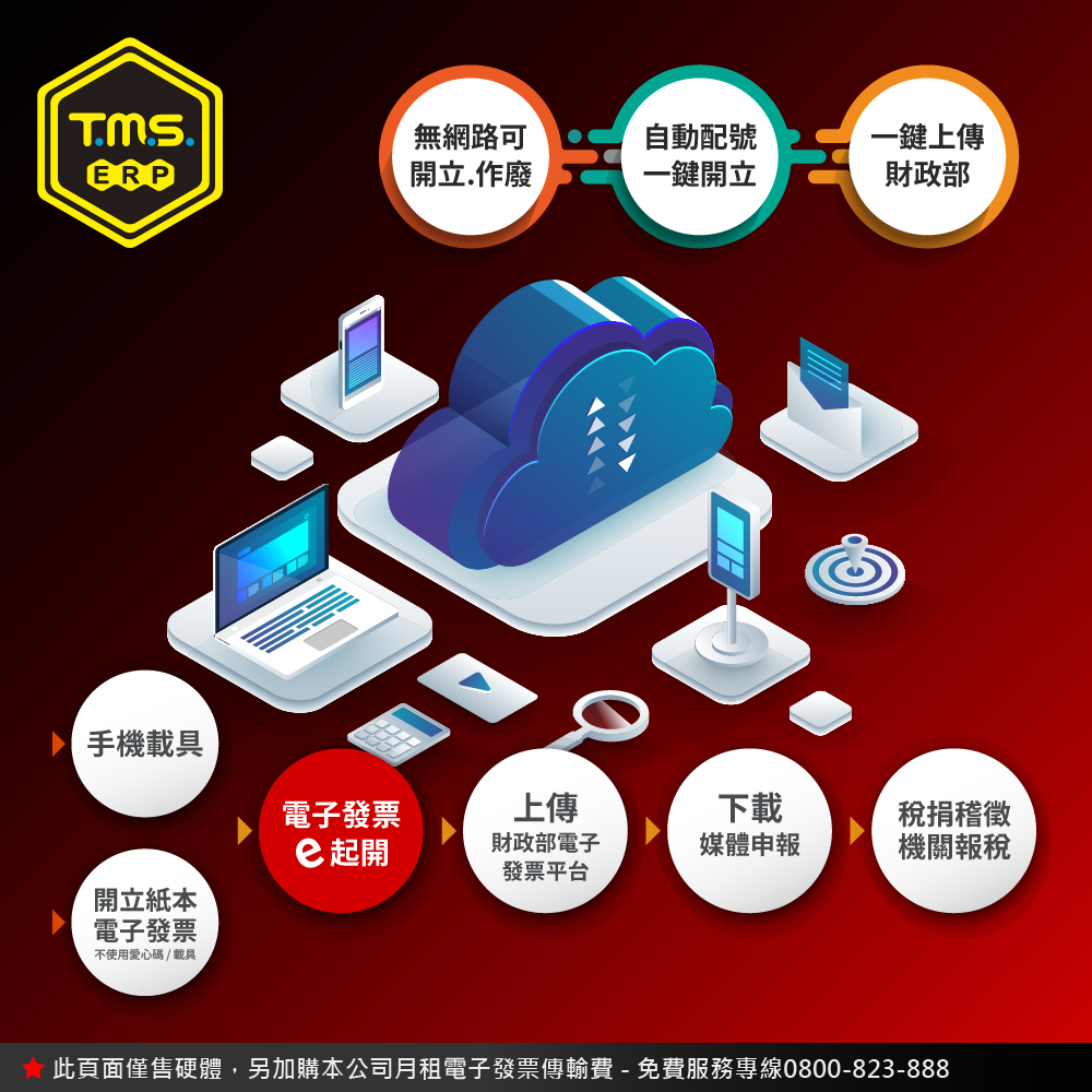 開立發票自動上傳財政部電子發票中心,免輸入。